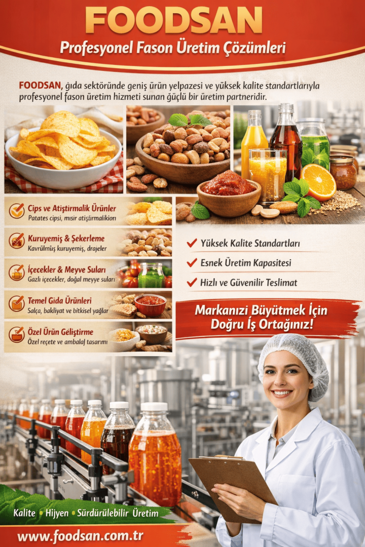 Markanızı büyütmek ve sektörde fark yaratmak için FOODSAN ile güvenilir ve profesyonel fason üretim çözümlerini keşfedin.